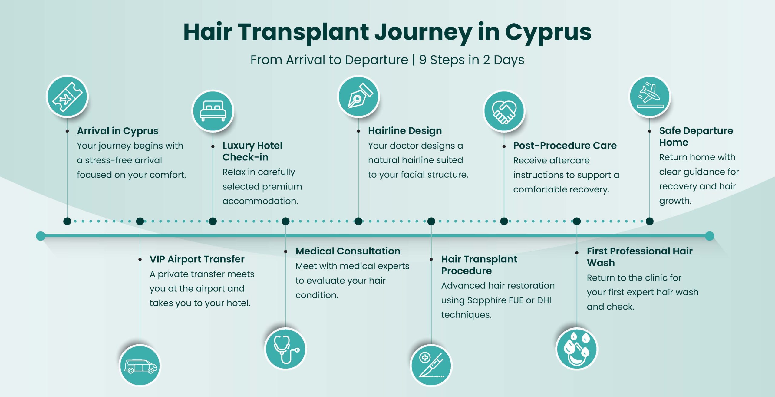 Combining medical excellence with personalized VIP service, we welcome patients from all over the world who seek world-class hair restoration in a discreet, comfortable Mediterranean setting.